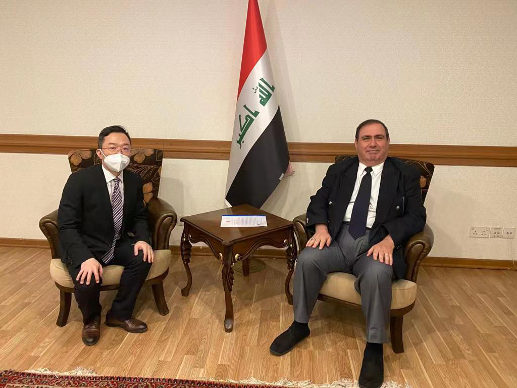 4月12日驻伊拉克使馆经商参赞许春会见伊拉克外交部亚澳司代理司长海德尔。